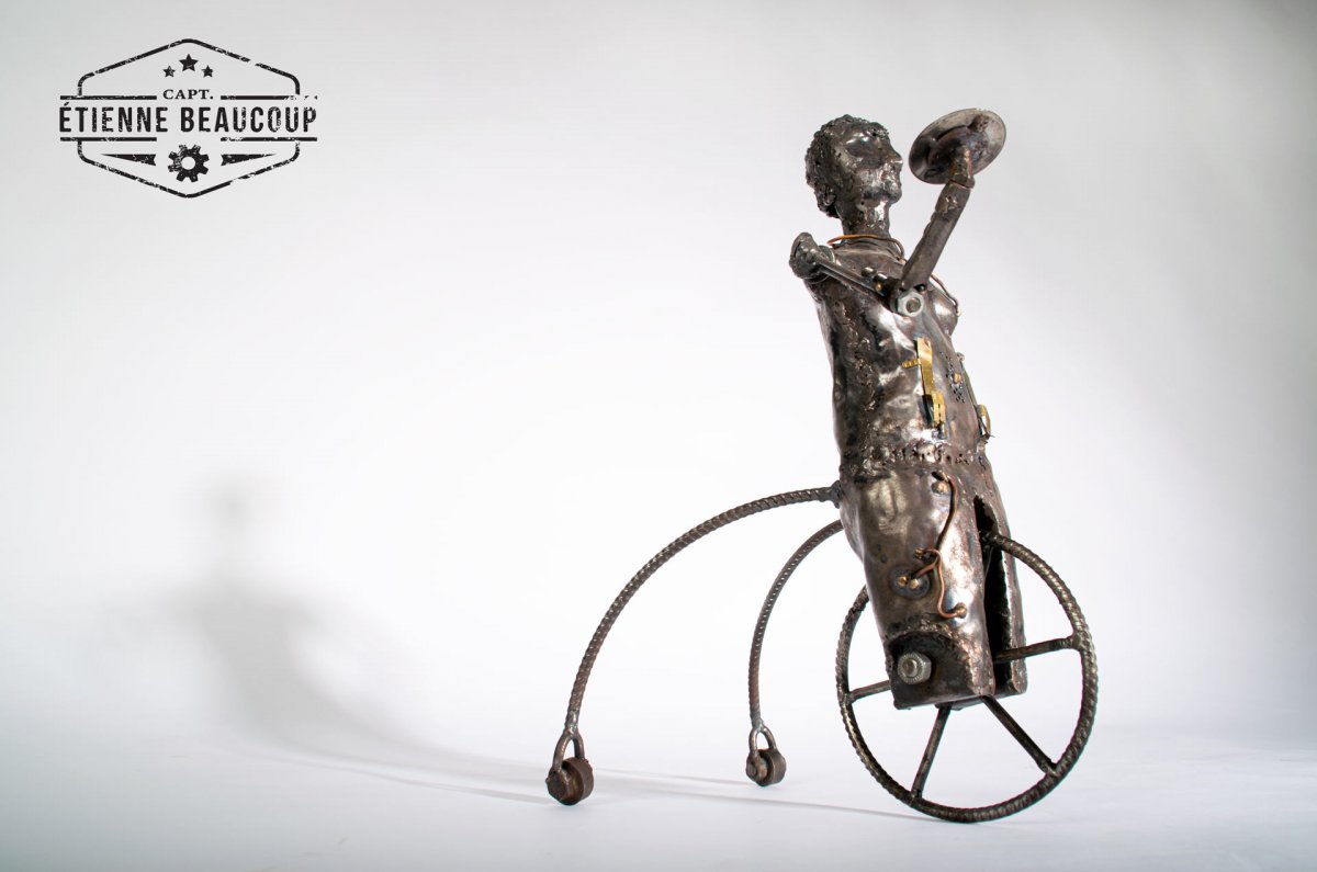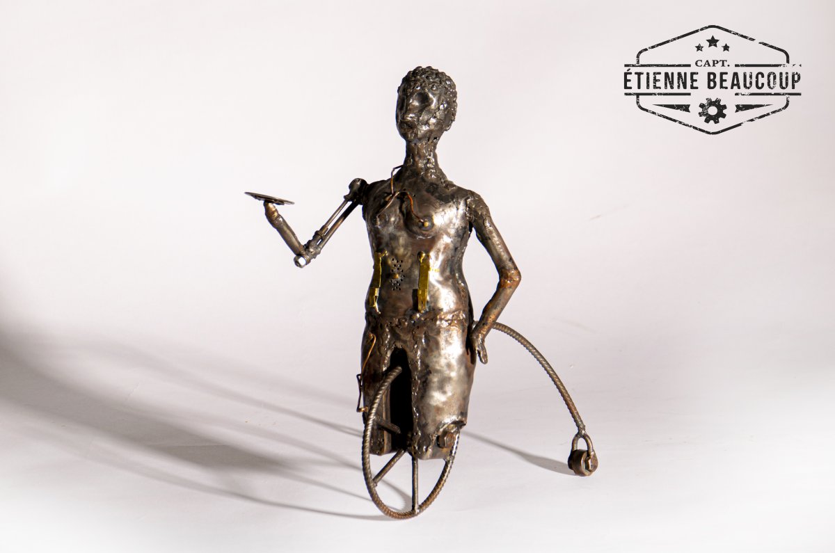 Sculptuur uit gerecupereerde staalplaten.