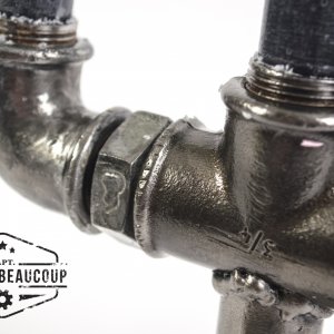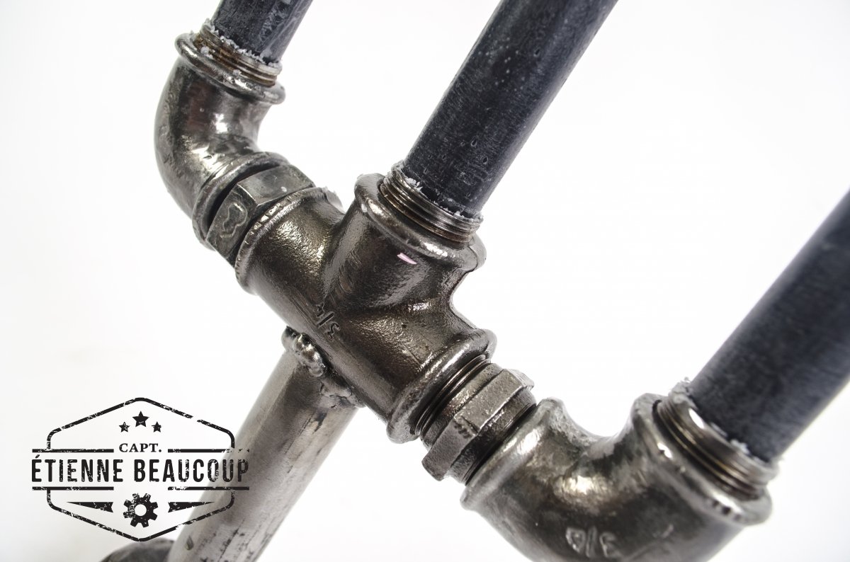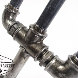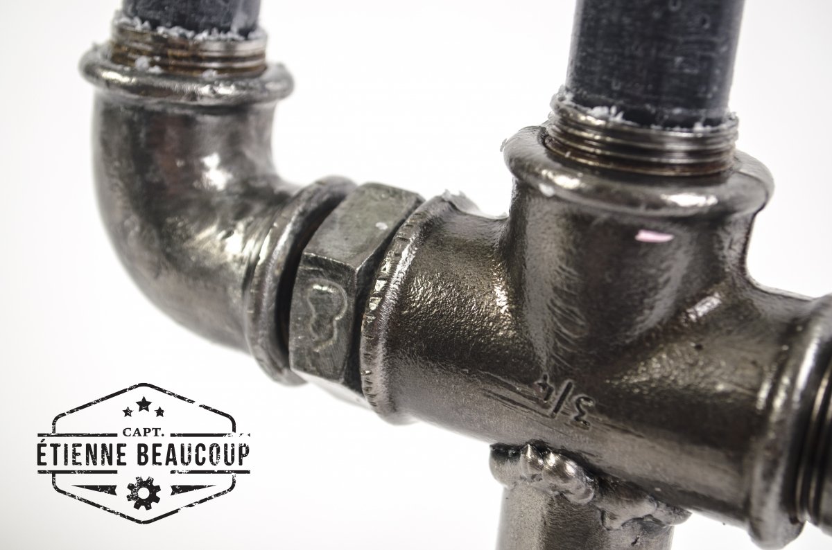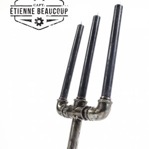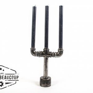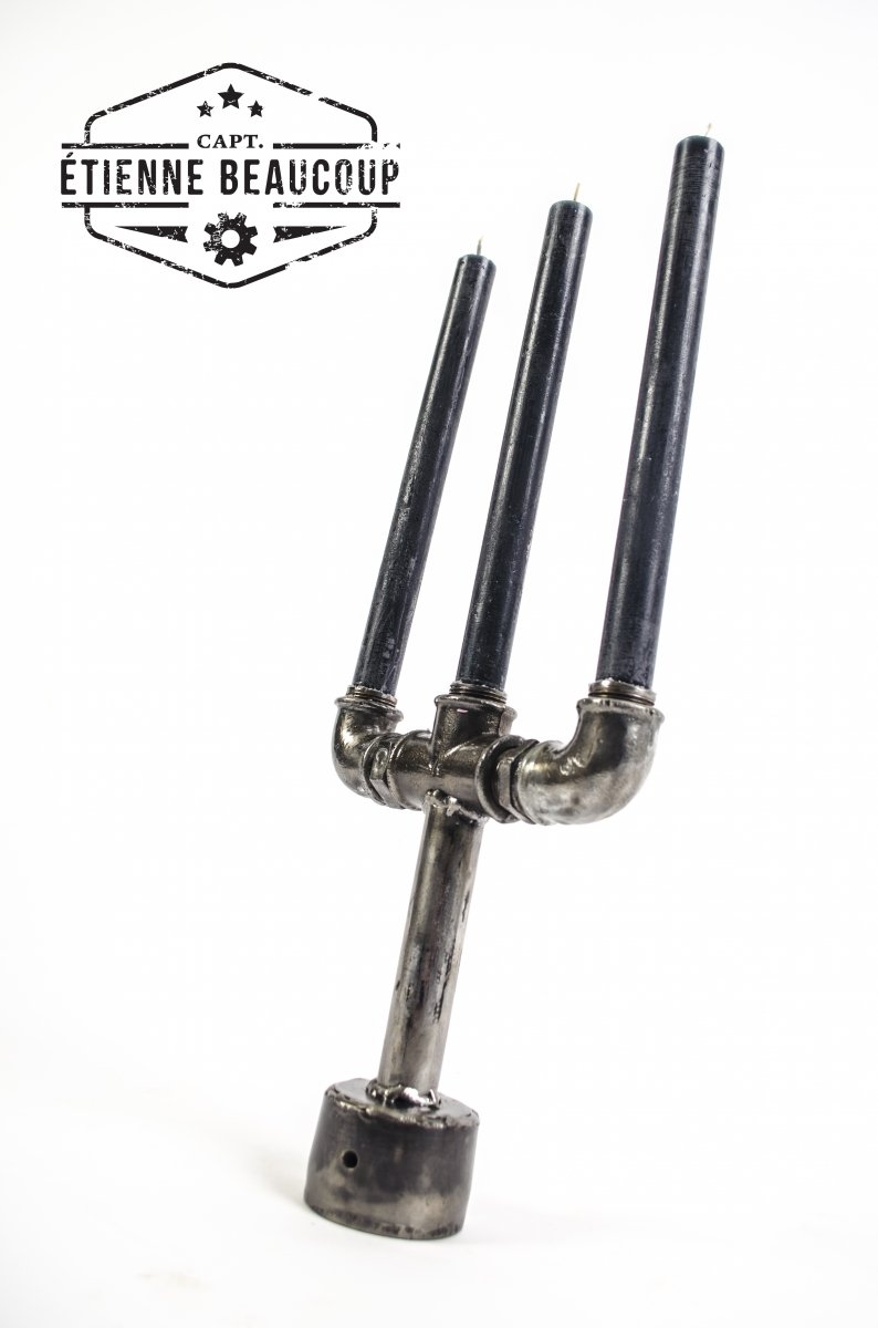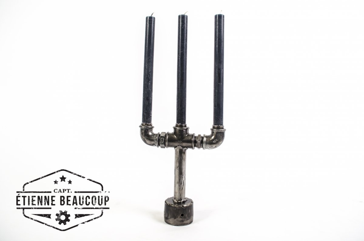 kandelaar voor 3 buffet kaarsen gemaakt uit recuperatie metaal. vooral Oude verwarmingsbuizen en koppelstukken.