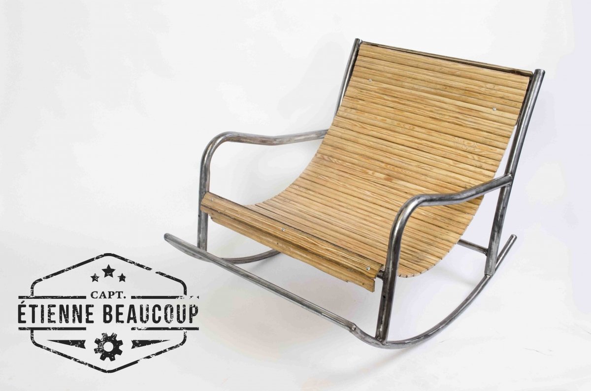 This upcycled rocking chair is created from an old trampoline and a few plumbingpipes. the seat is an old wooden rolling shutter. I will modify the hanging it in the near future with belts of a rollingshutter so that the seat is firm, more stable and can carry more weight