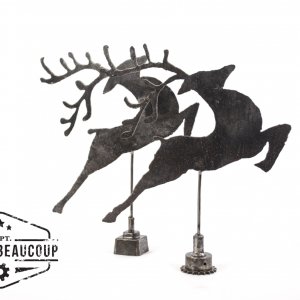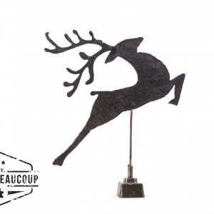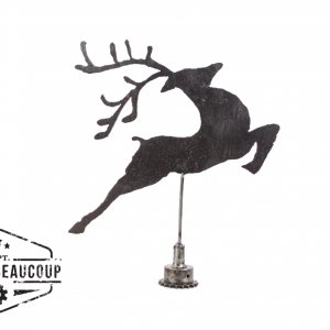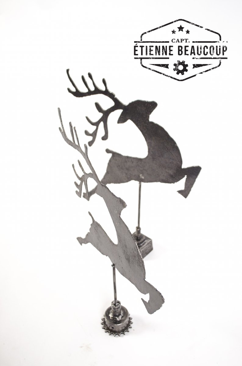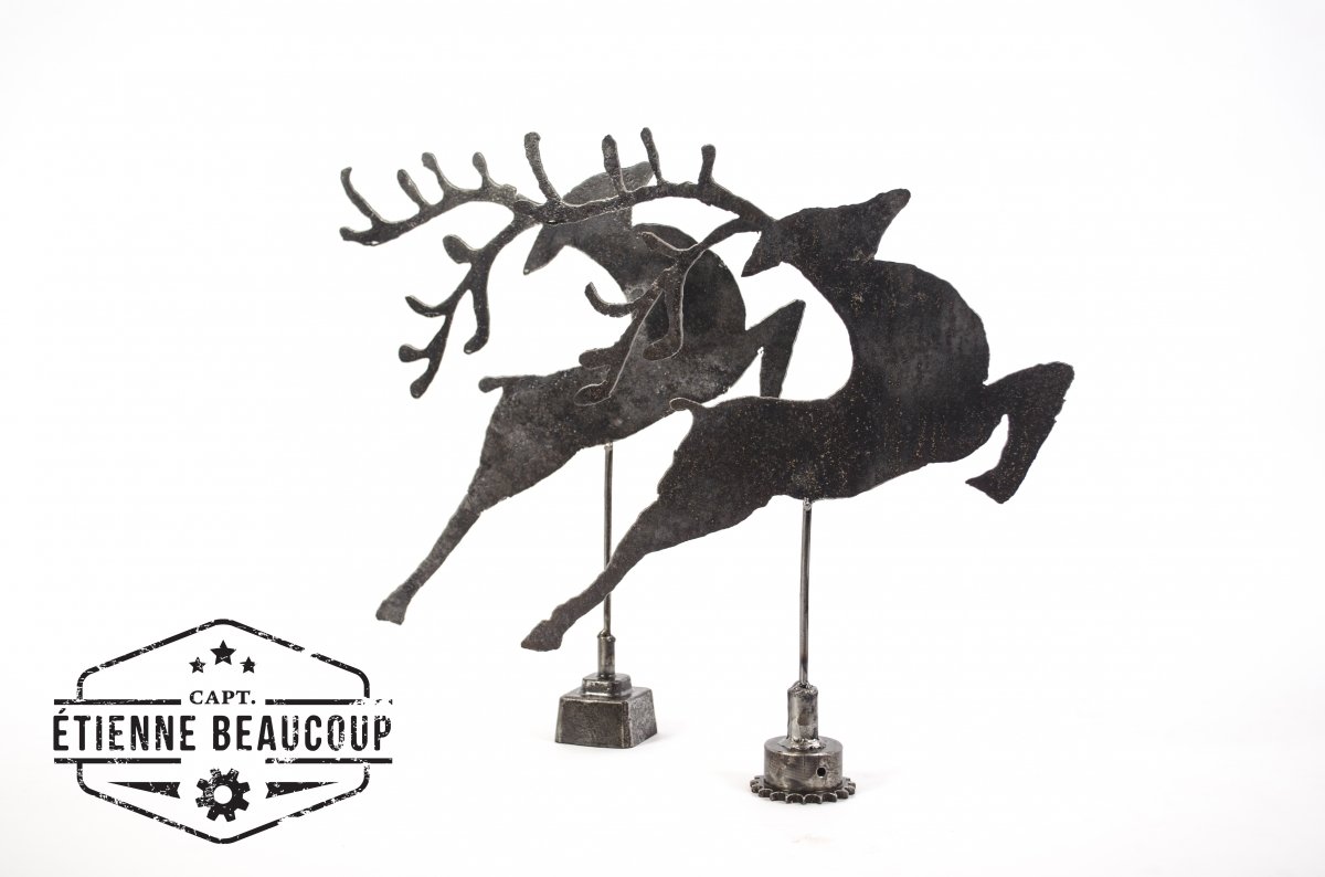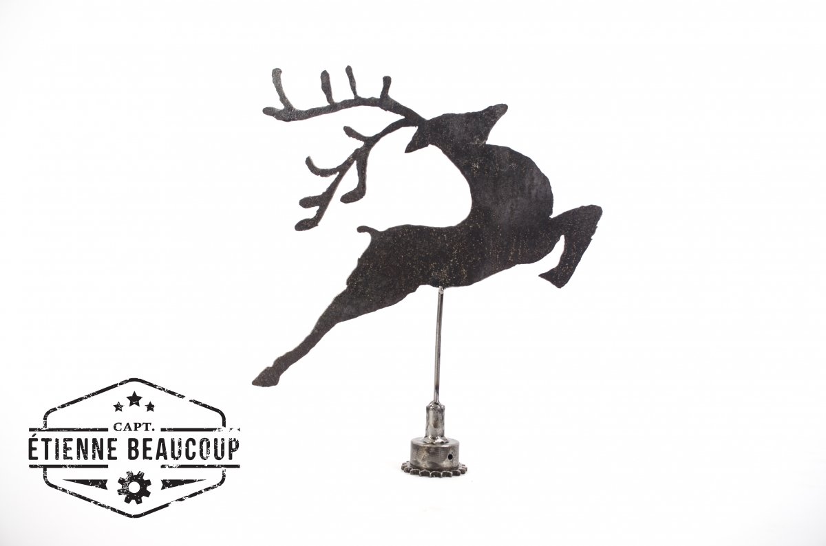 Dit decoratief element werd speciaal voor de kerstperiode gemaakt. Het rendier werd met de hand uitgesneden. Alle materiaal is recuperatie afvalmetaal.