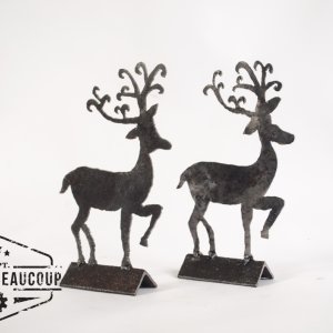 2 rendieren met de hand uitgesneden met de plasmacutter uit een oude metalen plaat.