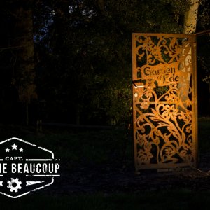Oude metalen pport met de hand uitgesneden. Heel decoratief als tuinornament.