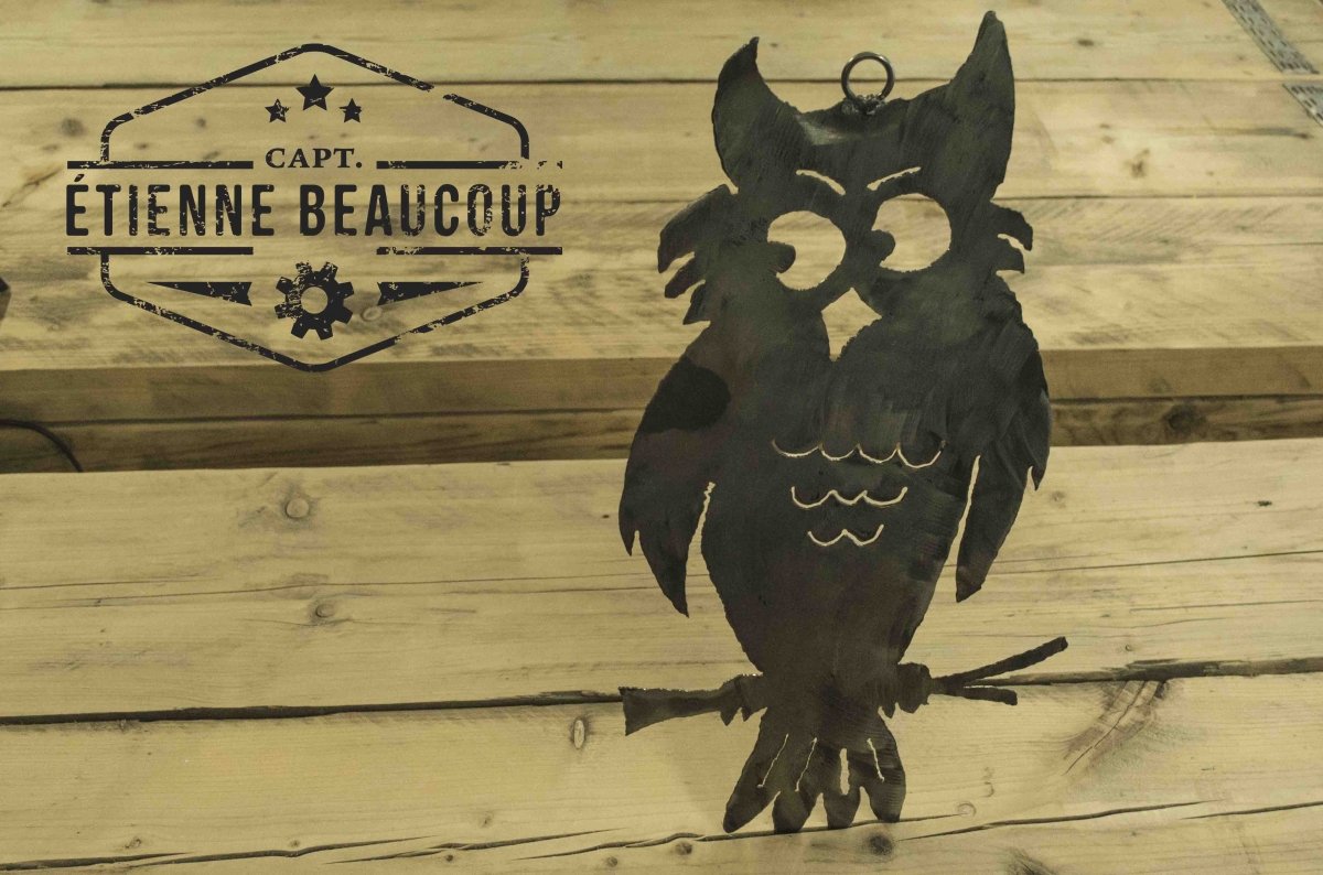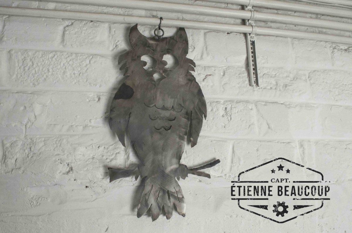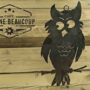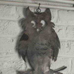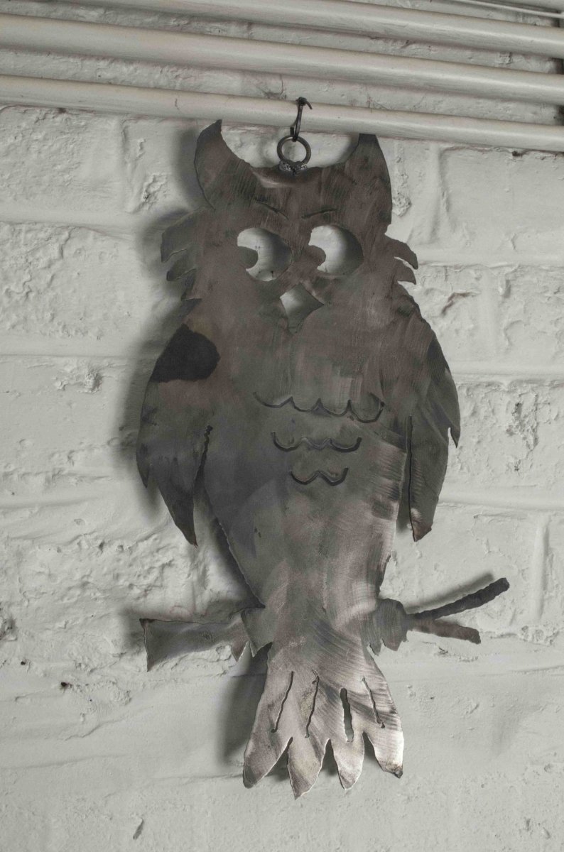 THis owl is made out of a piece of scrapmetalplate. with a rich so you can hang it. If you place it outdoor it will beautifully rust out.