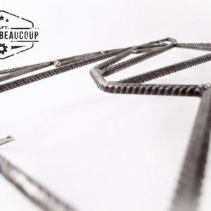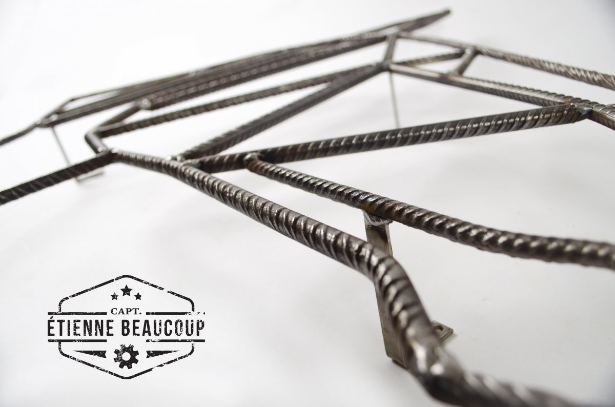 Kandelaar voor 4 theelichtjes gemaakt van betonijzers.