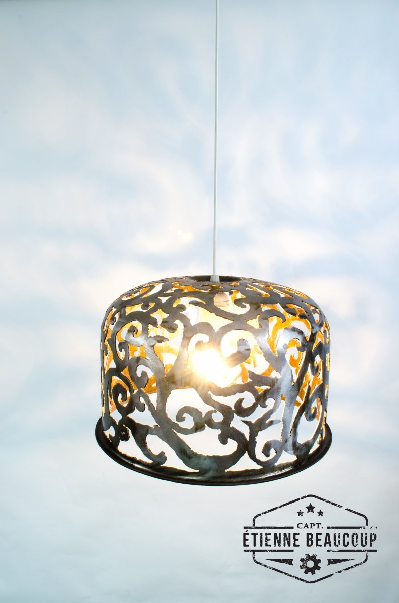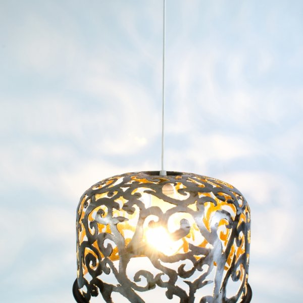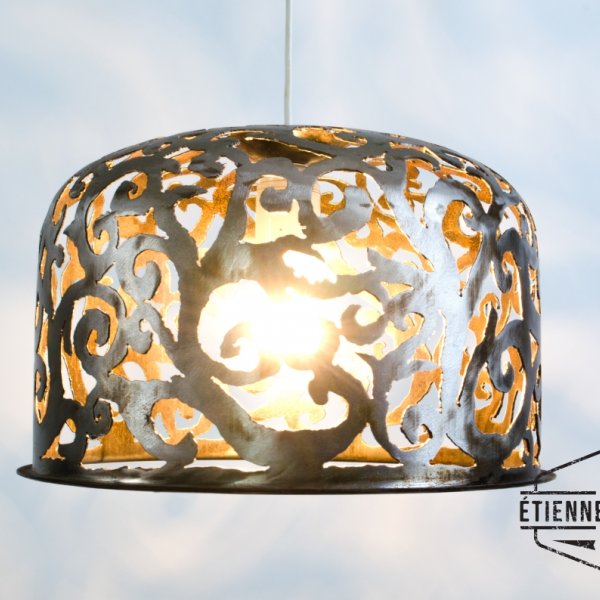 Hanglamp uit een expansievat met een victoriaans krulmotief
