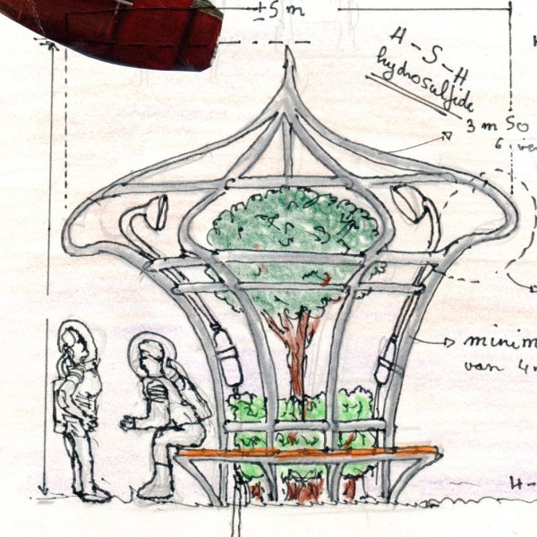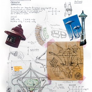Conceptcollage voor een zuurstofmachine voor de kolonisatie van Teegarden B