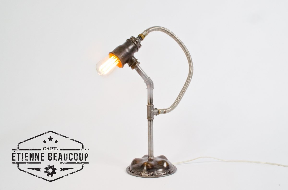 Plafondarmatuur uit oude verwarmingsbuizen.