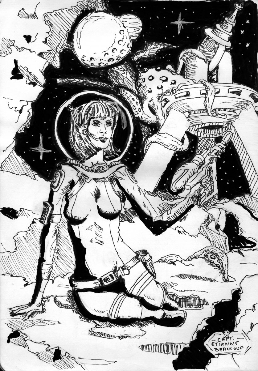 Een ruimteschip/tijdmachine binnen het steampunk/dieselpunk genre.