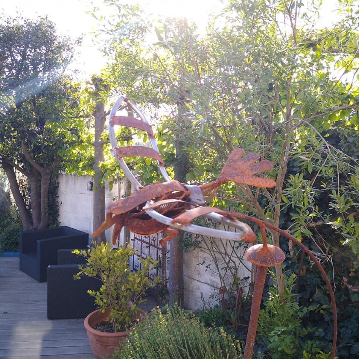 Sculptuur gemaakt uit gerecycleerd dun plaatstaal