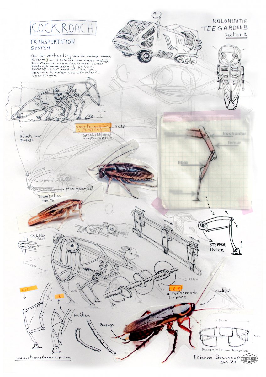 Conceptcollage voor een vervoersmiddel voor de kolonisatie van Teegarden B